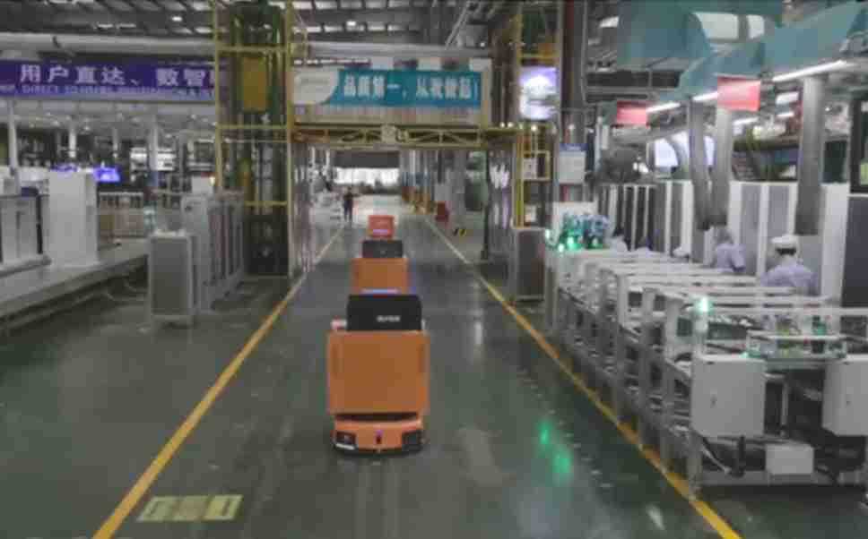 为车载冰箱物流配送打造的智能解决方案,,包含产中物流通过潜伏举升AMR搬运至线边,,,产后成品物流智能仓储,,流程包含产中物流智能齐套入库,,线边安灯叫料AMR智能配送至线边,,,成品入库、、、、出库,,,,通过无人堆高车机器人,,,智能仓储管理替代人工作业管理,,,,实现更高存储、、、更高效率、、、、更具柔性化的解决方案。。。