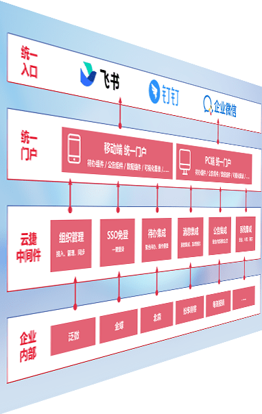 对协作平台提供支持服务,,支持企业应用与协作平台对接,,,包含组织同步、、、消息集成、、待办集成等。。支持目前主流的协作平台:钉钉、、、企微和飞书。。